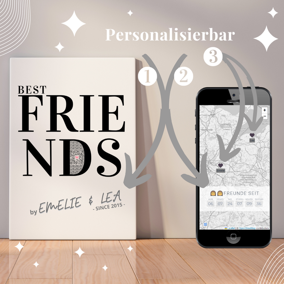 💟 Ihr sucht ein einzigartiges Geschenk für eure(n) beste(n) Freund(in)? Als personalisiertes Geschenk zur Hochzeit, als Abschiedsgeschenk zum Umzug, oder als einzigartiges Geschenkidee zum Geburtstag eurer/eures BFF.