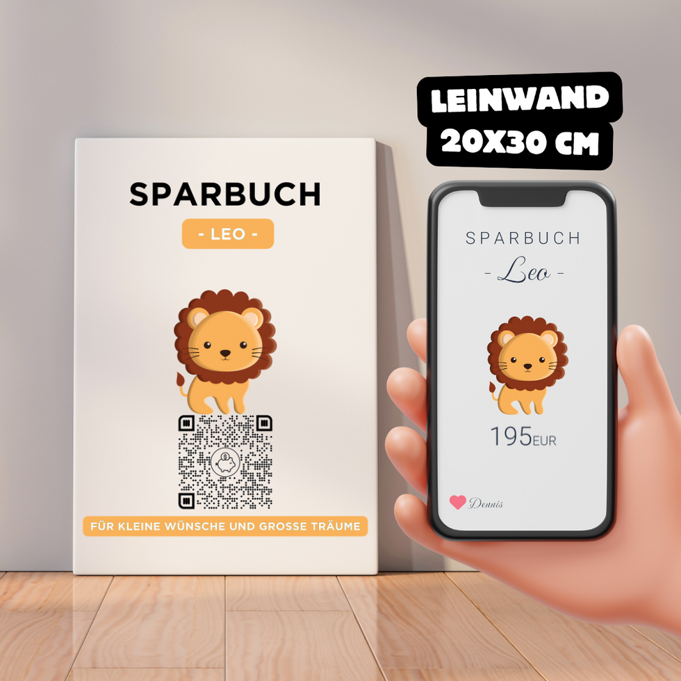 Digitales Sparbuch | QrCode Bild auf Leinwand | Löwe
