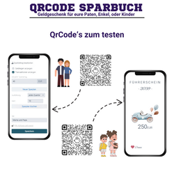 🇧 Über die QrCode's wird kein echtes Geld übertragen. Das Geld sparst du seperat auf deinem Tagesgeldkonto, Girokonto, oder einfach zu Hause im Sparschwein.